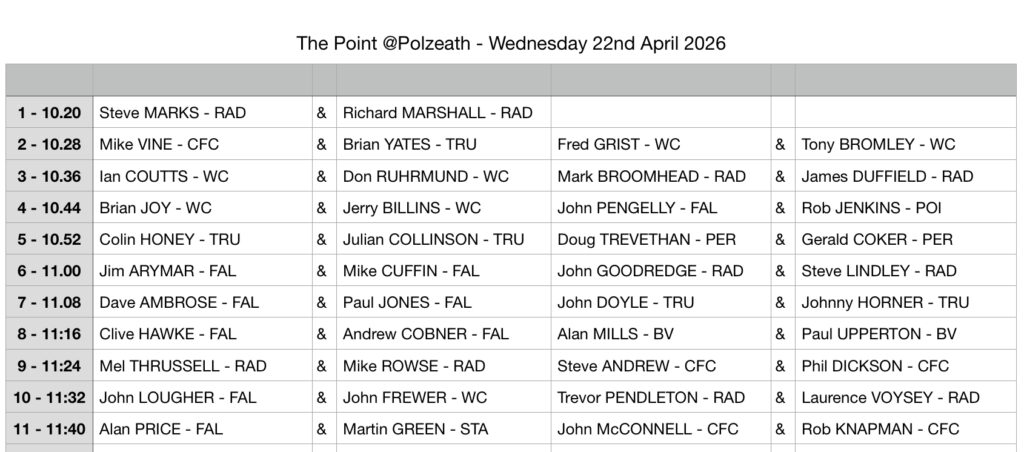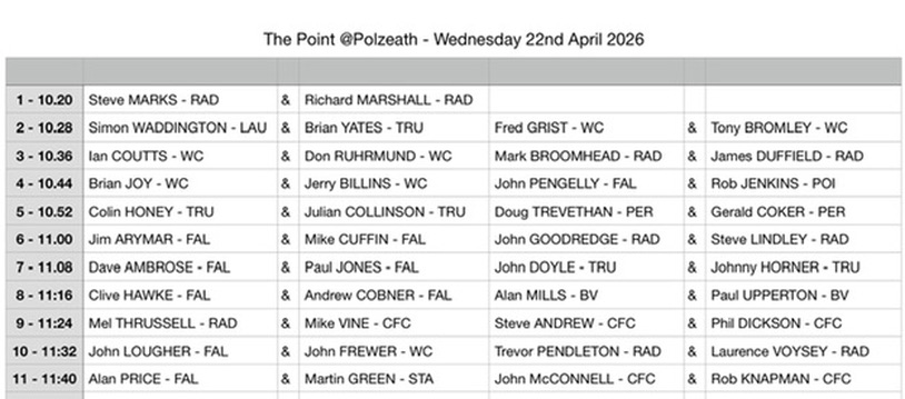 Thank you for volunteering to play in the Devon matches. We are a little over subscribed for the 8-pairs needed in our annual home and away fixtures v Devon. So, the selection has been made to give everyone at least one game.